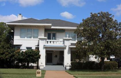 This is a 2-story, 3-bay house in the Mission/Spanish Revival style built in 1920. The foundation is undetermined. Exterior walls are original stucco. The building has a cross gable roof clad in original terra cotta barrell tile with flush eaves. There is one side right, exterior, stuccoed chimney. Windows are replacement vinyl, Prairie style grid/1 double-hung sashes. There is a single-story, three-quarter open porch characterized by a flat with balcony roof with square stuccoed posts. Moneterrey Style Spanish Revival.
