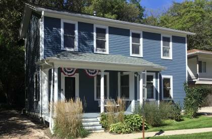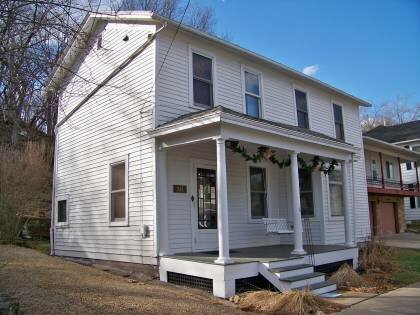 This is a 2-story domestic building in the Federal style built ca. 1900. The foundation is limestone, poured concrete. Exterior walls are wood. The building has a side-gable roof clad in asphalt shingles. Windows are original or historic wood 1/1 double-or single hung; Chicago/Picture; with molding. The porch is original or historic, L-Inset w/ bay; Less than Full-Height Entry; Wood materials; Half-hipped roof; Classical supports. Doors are original or historic wood; vinyl glazed.