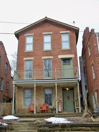 This is a 3-story domestic building in the Italianate style built ca. 1870. The foundation is limestone. Exterior walls are brick, limestone. The building has a front-gable roof. Windows are original or historic wood 2/2 double-or- single hung. The porch is original or historic; Wood materials; 2nd Story Deck roof; Turned Spindles. Doors are original or historic wood unglazed, panel, recessed entry with transom, sidelights, molding.