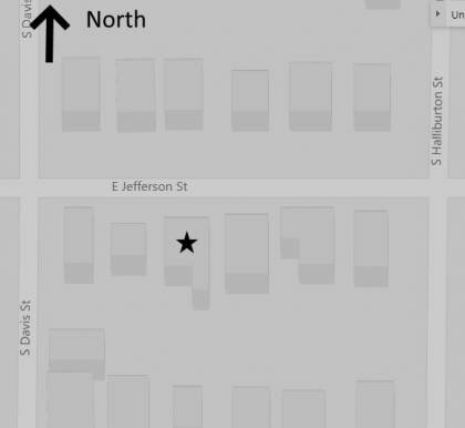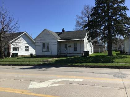 This is a 1-story, 3-bay house in the Folk/Traditional style built in the period 1900-1909. Exterior walls are replacement aluminum siding. The building has a low front gable roof clad in replacement asphalt shingles. There is one center, straddle ridge, brick chimney. Windows are replacement vinyl, 1/1 double-hung sashes. There is a single-story, two-bay porch characterized by a shed roof clad in corrugated metal with modern decorative metal posts.