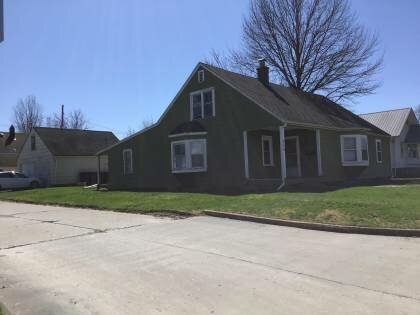 This is a 1.5-story, 3-bay house in the Craftsman style built in the period 1920-1929. The foundation is stone. Exterior walls are replacement asbestos. The building has a high side gable roof clad in replacement asphalt shingles. There is one center, straddle ridge, brick chimney. Windows are original wood, vertical 4/1 double-hung sashes. There is a single-story, recessed open porch characterized by a gabled roof clad in asphalt shingles with square wood posts.