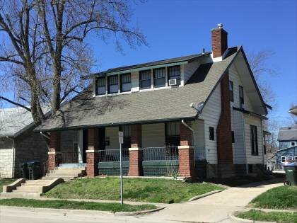 This is a 1.5-story, 3-bay house in the Bungalow/craftsman style built in 1908. Exterior walls are replacement aluminum siding. The building has a medium side gable roof clad in replacement asphalt shingles and one shed-roofed dormer. There is one offset left, exterior, brick chimney. Windows are original wood, 4/1 double-hung sashes. There is a single-story, full-span open porch characterized by a shed roof clad in asphalt shingles with square brick posts on battered brick piers. There is a single-story, side, frame addition.