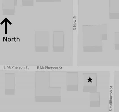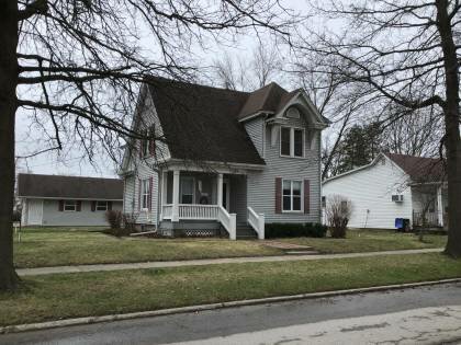 This is a 2-story, 3-bay house in the Late Victorian style built in the period 1900-1909. The foundation is beveled concrete block. Exterior walls are replacement vinyl siding. The building has a hipped gable roof clad in replacement asphalt shingles. There is one center, straddle ridge, metal pipe chimney. Windows are replacement vinyl, 1/1 double-hung sashes. There is a single-story, two-bay open porch characterized by an integrated (under the main) roof clad in asphalt shingles with classical wood posts on rectangular concrete block piers.