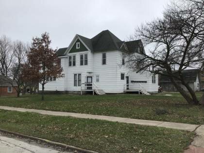 This is a 2-story, 3-bay house in the Queen Anne style built ca. 1901. The foundation is rusticated concrete block. Exterior walls are replacement asbestos. The building has a hipped gable roof clad in replacement asphalt shingles. Chimney removed. Windows are original wood, 1/1 double-hung sashes. There is a single-story, single-bay platform/stoop. Original porches removed.