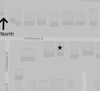 This is a 1-story, 3-bay house in the Folk/Traditional style built ca. 1915. Exterior walls are replacement asbestos. The building has a pyramidal roof clad in replacement asphalt shingles. There is one offset right, rear slope, metal pipe chimney. Windows are original wood, 1/1 double-hung sashes. There is a single-story, single-bay platform/stoop characterized by a gabled roof clad in asphalt shingles.