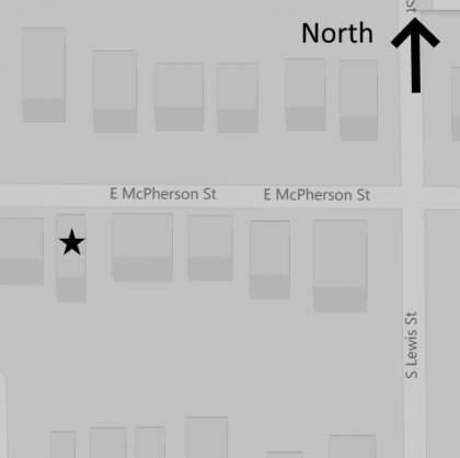 This is a 1-story, 3-bay house in the Bungalow/craftsman style built in the period 1910-1919. The foundation is rusticated concrete block. Exterior walls are original wood siding. The building has a front gable roof clad in replacement asphalt shingles. There is one side left, side slope, brick chimney. Windows are original wood, vertical 3/1 double-hung sashes. There is a single-story, full-span open porch characterized by a hip-and-gable roof clad in asphalt shingles with battered wood posts on square rock face block piers.