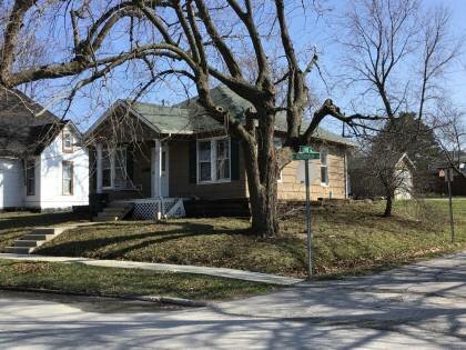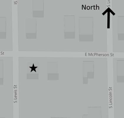 This is a 1-story, 3-bay house in the Folk/Traditional style built in the period 1900-1909. Exterior walls are replacement asbestos. The building has a pyramidal roof clad in replacement asphalt shingles. No chimney is present. Windows are replacement wood, horizontal 2/horizontal 2 double-hung sashes. Windows replaced in 1950s. There is a single-story, single-bay open porch characterized by a gabled roof clad in asphalt shingles with classical wood posts on square concrete block piers.