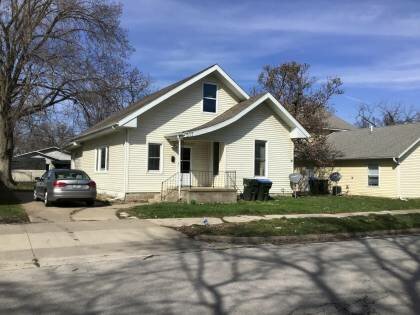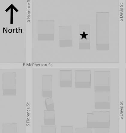 This is a 1.5-story, 3-bay house in the Folk/Traditional style with Tudor influences built in the period 1900-1909. The foundation is concrete block. Exterior walls are replacement vinyl siding. The building has a medium front gable roof clad in replacement asphalt shingles. No chimney. Windows are replacement aluminum, 1/1 double-hung sashes. There is a single-story, single-bay open porch characterized by an integrated (under the main) roof clad in asphalt shingles with modern decorative metal posts on rectangular concrete block piers. Flush center entrance.