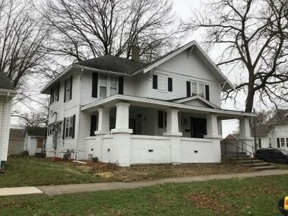 This is a 2-story, 3-bay house in the Craftsman style built in the period 1900-1909. The structural system is undetermined. The foundation is undetermined. Exterior walls are original wood siding. The building has a hip and gable roof clad in replacement asphalt shingles and eave brackets. There is one center, front slope, parged brick chimney. Windows are original wood, 1/1 double-hung sashes. There is a single-story, full-span open porch characterized by a hip-and-gable roof clad in asphalt shingles with short battered stuccoed posts on square stuccoed piers.