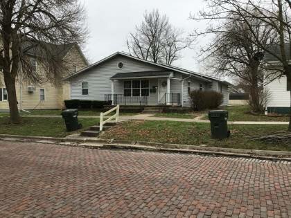 This is a 1-story, 3-bay house in the Minimal Traditional style built in 1989. The foundation is poured concrete. Exterior walls are original vinyl siding. The building has a low front gable roof clad in replacement asphalt shingles. No chimney present. Windows are original vinyl, 6/6 double-hung sashes. There is a single-story, two-bay open porch characterized by a shed roof clad in asphalt shingles with fluted metal posts.