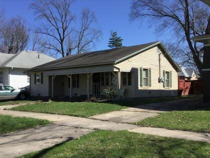 This is a 1-story, 4-bay house built in the period 1950-1959. The foundation is undetermined. Exterior walls are replacement vinyl siding. The building has a low side gable roof clad in replacement asphalt shingles. No chimney present. There is a single-story, recessed corner open porch characterized by an integrated (under the main) roof clad in asphalt shingles with square wood posts on square wood piers.