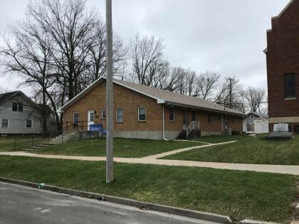Typical mid -century brick-clad Catholic parish center builidng with plain unornamented exterior, but gabled roof form hinting at traditional style. This building sits next to the parish's simple mid-century Neo-Gothic red brick church building.