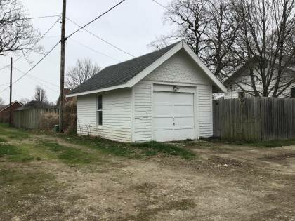 This is a 1.5-story, 3-bay house in the Craftsman style built in the period 1900-1909. The foundation is rusticated concrete block. Exterior walls are replacement vinyl siding. The building has a medium front gable roof clad in replacement asphalt shingles and brackets. No chimney is present. Windows are original wood, vertical 4/1 double-hung sashes. There is a single-story, full-span open porch characterized by a gabled roof clad in asphalt shingles with square vinyl-clad posts.