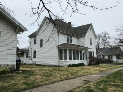 This is a 2-story, 2-bay house in the Folk/Traditional style built in the period 1890-1899. The foundation is rusticated concrete block. Exterior walls are replacement vinyl siding. The building has a hip and gable roof clad in replacement asphalt shingles. There is one side right, side slope, brick chimney. Windows are replacement wood, horizontal 2/horizontal 2 double-hung sashes. There is a single-story, single-bay enclosed porch characterized by a hip roof clad in asphalt shingles with square brick posts.