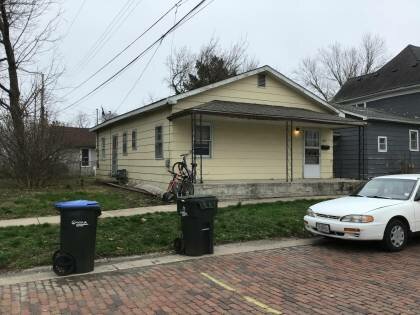 This is a 1-story, 2-bay house in the Minimal Traditional style built ca. 1940. The foundation is concrete block. Exterior walls are original press board. The building has a front gable roof clad in replacement asphalt shingles. There is one offset left, side slope, brick chimney. Windows are original wood, 1/1 double-hung sashes. There is a single-story, full-span open porch characterized by a hip roof clad in asphalt shingles with modern decorative metal posts.