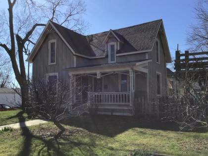 This is a 1.5-story, 3-bay house in the Gothic/Neo-Gothic style built ca. 1876. The foundation is brick. Hardiplank replaced vinyl siding. Wood shingles original. The building has a gabled ell roof clad in replacement asphalt shingles. No chimney. Windows are replacement vinyl, 1/1 double-hung sashes. There is a single-story, two-bay open porch characterized by a shed roof clad in asphalt shingles with square wood posts.