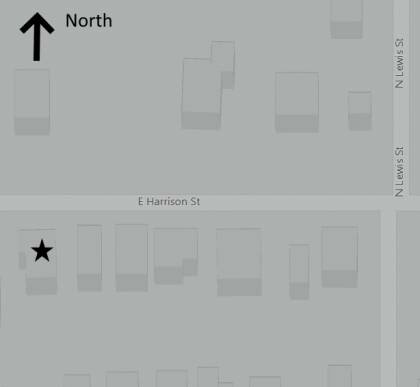 This is a 1.5-story, 3-bay house in the Queen Anne style built in the period 1890-1899. The foundation is rusticated concrete block. Exterior walls are replacement vinyl siding. The building has a hip and gable roof clad in asphalt shingles. No chimney. Windows are original wood, 1/1 double-hung sashes. Some vinyl 1/1 windows. There is a single-story, three-quarter open porch characterized by a hip roof clad in asphalt shingles with square wood posts on rectangular concrete block piers. Back porch retains turned supports on rusticated block.