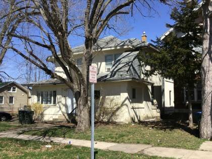 This is a 2-story, 2-bay house built in the period 1910-1919. The foundation is undetermined. Exterior walls are replacement stucco. The building has a medium hip roof clad in replacement asphalt shingles. There is one offset right, rear slope, brick chimney. Windows are original wood, 1/1 double-hung sashes. Some 2/2 and some 1 lite fixed. There is a single-story, full-span enclosed porch characterized by a hip roof clad in asphalt shingles. Center entrance.
