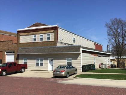 This is a 2-story, 4-bay commercial building built in the period 1920-1929. The foundation is undetermined. Exterior walls are replacement vinyl siding and original brick. The building has a low front gable roof clad in replacement asphalt shingles. No chimney present. Windows are replacement vinyl, 1/1 double-hung sashes.