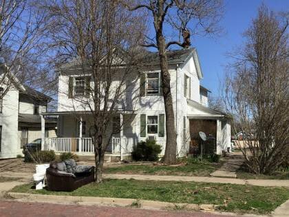 This is a 2-story, 3-bay house built in the period 1890-1899. The foundation is brick. Exterior walls are replacement vinyl siding and original wood siding. The building has a center gable roof clad in replacement asphalt shingles. There is one side left, straddle ridge, brick chimney. Windows are original wood, 6/6 double-hung sashes. There is a single-story, two-bay open porch characterized by a shed roof clad in asphalt shingles with square wood posts on rectangular concrete block piers. There is also a side shed roof porch with battered columns.