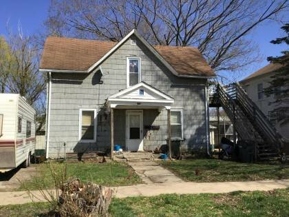 This is a 1.5-story, 3-bay house in the Folk/Traditional style built in the period 1900-1909. The foundation is rusticated concrete block. Exterior walls are replacement asbestos. The building has a center gable roof clad in replacement asphalt shingles. There is one side right, exterior, metal pipe chimney. Windows are replacement vinyl, 1/1 double-hung sashes. There is a single-story, single-bay open porch characterized by a gabled roof clad in asphalt shingles with square wood posts. There is a flush center entrance.