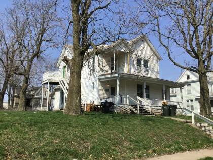 This is a 2-story, 3-bay house in the Late Victorian style built in the period 1880-1889. Exterior walls are replacement vinyl siding and aluminum siding. The building has a hip and gable roof clad in replacement asphalt shingles and one hip-roofed dormer. There is one center, rear slope, brick chimney. Windows are replacement vinyl, 1/1 double-hung sashes. There is a single-story, full-span open porch characterized by a hip roof clad in asphalt shingles with turned wood posts. There is a flush off center entrance.