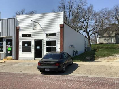This is a 1-story, 3-bay commercial building in the 20th Century Commercial style built in the period 1930-1939. The structural system is masonry. The foundation is undetermined. Exterior walls are replacement vinyl siding. The building has a low front gable roof clad in replacement asphalt shingles. There is one side right, side slope, metal pipe chimney. Windows are replacement vinyl, 1/1 double-hung sashes.