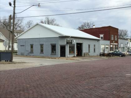This is a 1-story, 4-bay commercial building in the 20th Century Commercial style built in the period 1920-1929. The structural system is masonry. Exterior walls are original rusticated concrete block and original concrete block. The building has a medium side gable roof clad in replacement metal. No visible chimney. Windows are replacement wood, 1/1 double-hung sashes. Fixed storefront window. There is a single-story, side, garage addition. Concrete block garage on side.