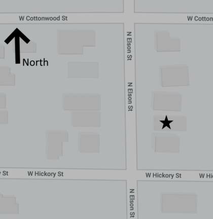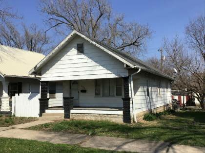 This is a 1-story, 2-bay house in the Craftsman style built in the period 1890-1899. The foundation is rusticated concrete block. Exterior walls are replacement aluminum siding. The building has a medium front gable roof clad in replacement asphalt shingles. There is one side right, side slope, metal pipe chimney. Windows are original wood, 1/1 double-hung sashes. There is a single-story, full-span umbrage characterized by an integrated (under the main) roof clad in asphalt shingles with square concrete block posts on square concrete block piers.