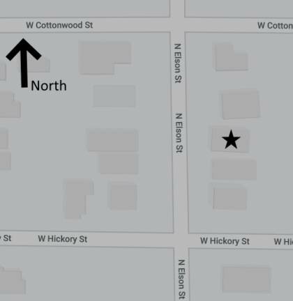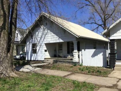 This is a 1.5-story, 3-bay house in the Craftsman style built in the period 1890-1899. The foundation is rusticated concrete block. Exterior walls are replacement press board. The building has a hip and gable roof clad in replacement metal. There is one offset left, side slope, metal pipe chimney. Windows are original wood, 1/1 double-hung sashes. There is a single-story, two-bay open porch characterized by an integrated (under the main) roof clad in metal with square concrete block posts on square concrete block piers.