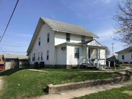 The front porch is enclosed. The house has been converted to a duplex.