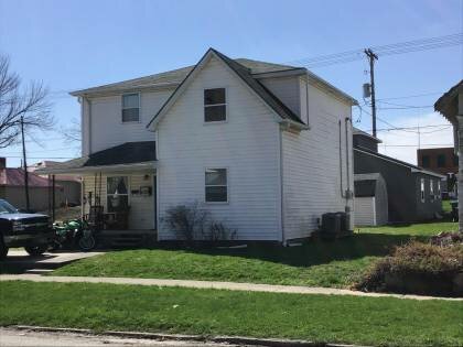 The porch has new deck and supports. The window openings have been made smaller and the fenestration pattern has been changed with fewer windows. The house has been converted into a multi-family residence.