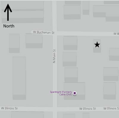 Infill building. 1914 Sanborn map shows 1 1/2 story frame stable with 3 partitions in this location. Stable originally associated with house at 415 Elson St. Lot was later split. No record on property card.