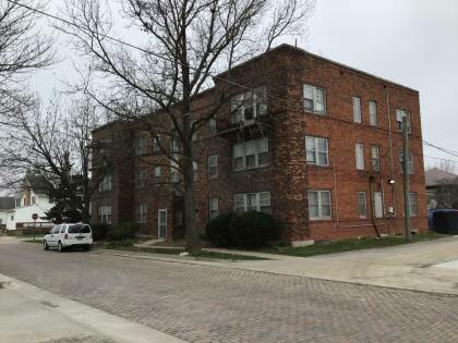 This is a 3-story, 5-bay multi-family residence in the Eclectic style. The structural system is masonry. The foundation is undetermined. Exterior walls are original brick. The building has a flat with parapet roof. No chimney . Windows are original wood, 9/1 double-hung sashes. No porch. There is a single-story, front ell, frame addition. Added room.