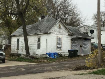 This is a 1-story, 3-bay house built in the period 1900-1909. The foundation is rusticated concrete block. Exterior walls are replacement asbestos. The building has a hip and gable roof clad in replacement asphalt shingles. There is one center, rear slope, brick chimney. Windows are original wood, 1/1 double-hung sashes. There is a single-story, two-bay open porch characterized by a shed roof clad in asphalt shingles with square wood posts.